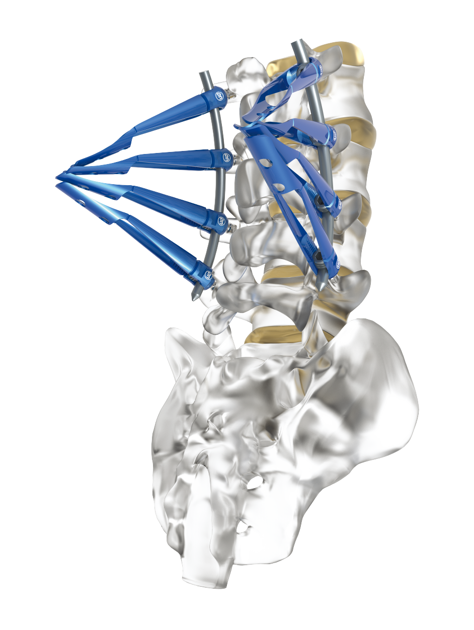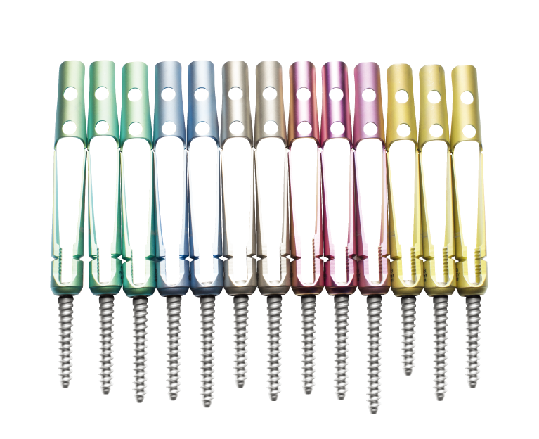 微创固定系统从万向螺钉所衍生出来的长叶片简化了微创手术,也拓展了微创手术的可能性。此系统除适用于经皮穿刺术外,还多了一个新的术士,小伤口开放性治疗,让手术更简便及安全,在手术过程中两种术士可以相互切换。 适用于胸腰椎节段T1-S1。用于椎体骨折与肿瘤切除后的固定、脊柱侧弯与前弯、脊椎滑脱(第I、II、III级)、椎间盘病变,脊椎不稳定。